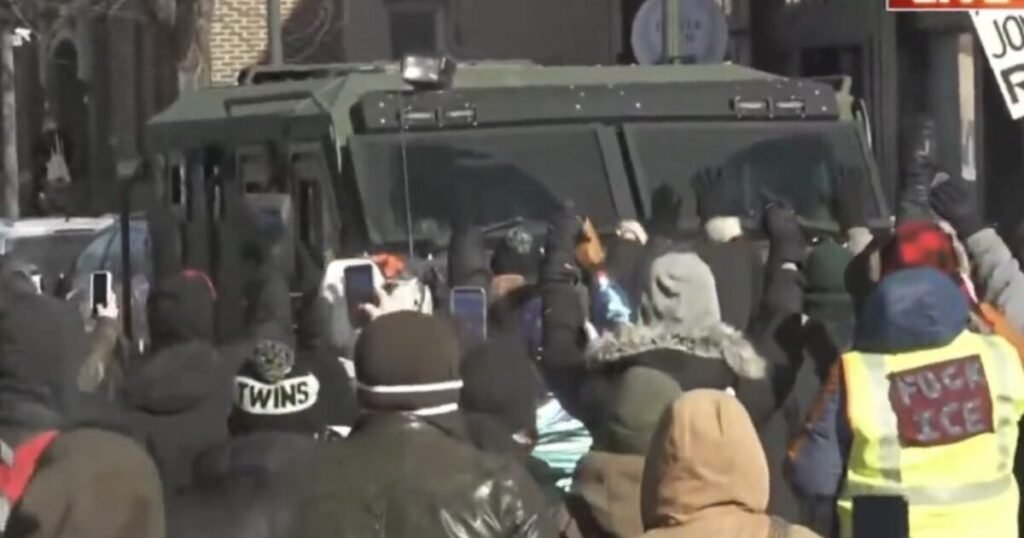 WATCH: Chaos Erupts in Minneapolis Following ICE Involved Shooting as Leftists Throw Rocks at ICE, Block Armored ICE Vehicle, Set Dumpster Ablaze in Organized Insurrection (VIDEOS)