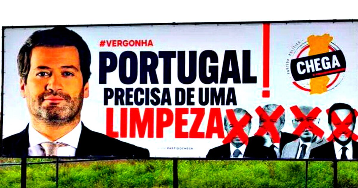 ‘Portugal needs a cleaning’: a Chega political billboard.